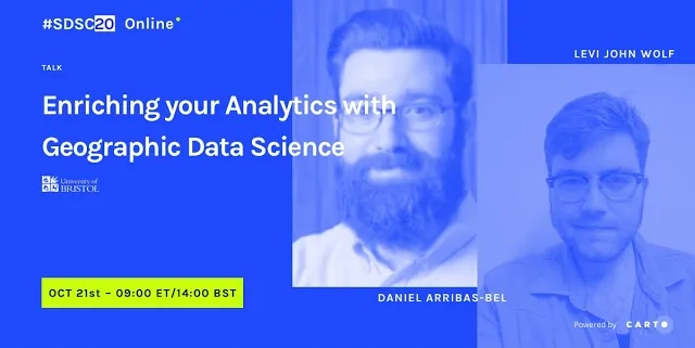 At #SDSC20, The Spatial Data Scientist of the Year Award was presented to - for his work to advance research in Spatial Data Science. You can read more about Dani and other shortlisted candidates on our blog.