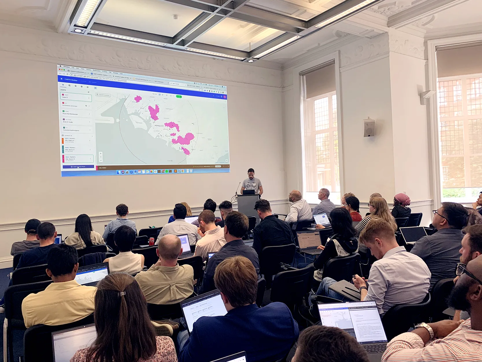This isn’t a workshop style event, however, there will be plenty of discussions and opportunities to ask questions. There will be a series of presentations that get into the technical details of how different organizations are architecting their spatial focused applications.
